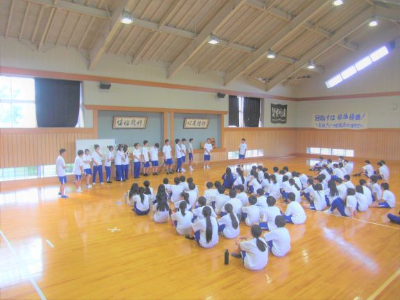 10月26日(金)に実施予定の体育大会に向けて、先週金曜日の6校時に結団式を行いました。4つの団(黄団・紫団・赤団・青団)に分かれて、3年生から1・2年生に向けてのメッセージと先生方のメッセージが伝えられました。 学年の枠を超え、一致団結して素晴らしい団活動が展開されることを期待しています。当日が楽しみです。