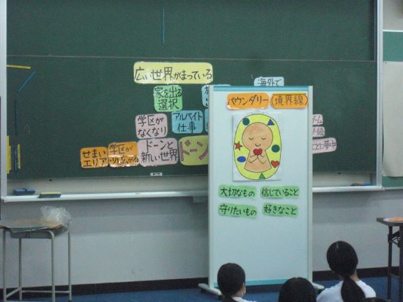 9/29(月)の5・6校時に、「まちのほけんしつ」から保健師さんと助産師を講師としてお招きし、2年生で「性教育」を実施しました。 今回は、➀「コロとカラダを守る~バウンダリーの考え方~」➁「恋愛とデートDV」➂「妊娠と避妊」の3本のテーマで学びを深めました。