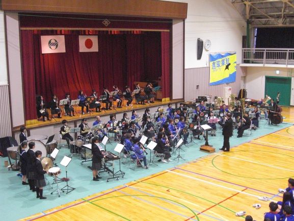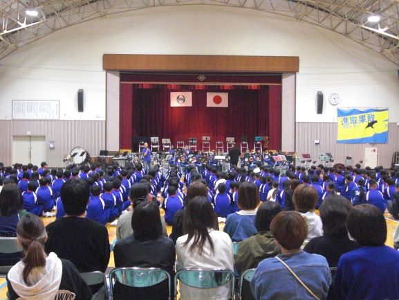 また6校時はPTA研修部主催の事業として、昨年度好評であった吹奏楽団「ピュアブラス」さんを再びお招きし、吹奏楽公演が行われました。「ピュアブラス」さんは、長浜市・米原市を中心に地域に根付いた活動を展開されており、各地で文化活動の促進に寄与されています。