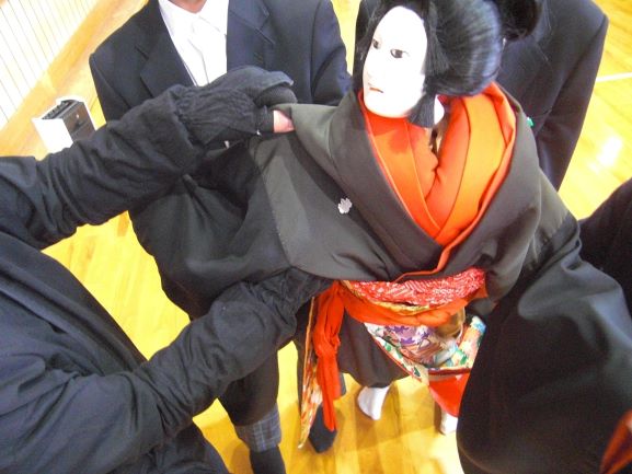 昨日2・3校時に、2年生で伝統文化学習として滋賀県選択無形民俗文化財の「人形浄瑠璃:冨田人形」について学習しました。冨田人形共遊団の方々に来校いただき、実際に人形遣いを披露していただきました。 また後半は人形に触れさせていただくことができ、数人で人形を操りながら伝統文化の奥深さを学ぶいい機会となりました。