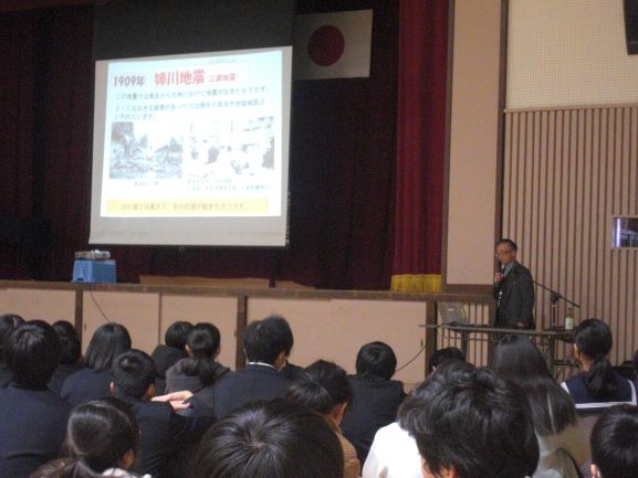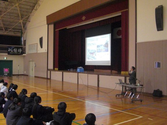 本日6校時に、市防災危機管理課の杉江様に来校いただき、災害対策について学ぶ「防災教室」を全校で実施しました。いつ起こるかわからない災害に備えるために、様々な視点から防災に対する知識を教えていただき、備えることの大切さを学ぶことができました。 まずは「自助」「共助」として自分は何ができるのか、常日頃から考えておくことを再確認できたと思います。 杉江様、お忙しい中ありがとうございました。