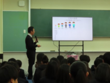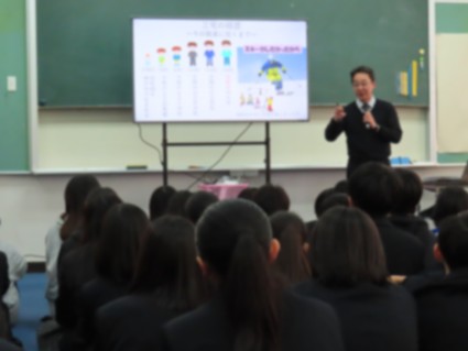 そして1年生では、「職業講話」を実施しました。大学の先生を講師にお招きし、中学生のうちに「いろんな職業を知る」「自分の個性は何かを知る」ことや、「縁」も大切であること等、将来について考えるいい機会となりました。