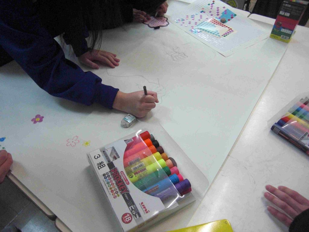 先週から卒業式に向けての取組が始まり、1・2年生が毎年恒例のモザイクアートやメッセージカードの作成を行っています。モザイクアートは、小さな色のシール紙を決められた場所に貼っていくコツコツとした作業です。メッセージカードには、お世話になった3年生に向けてのメッセージを書き、クラスごとに工夫をして貼ります。 今年はどのようなモザイクアートやメッセージカードができるのか、とても完成が楽しみです。