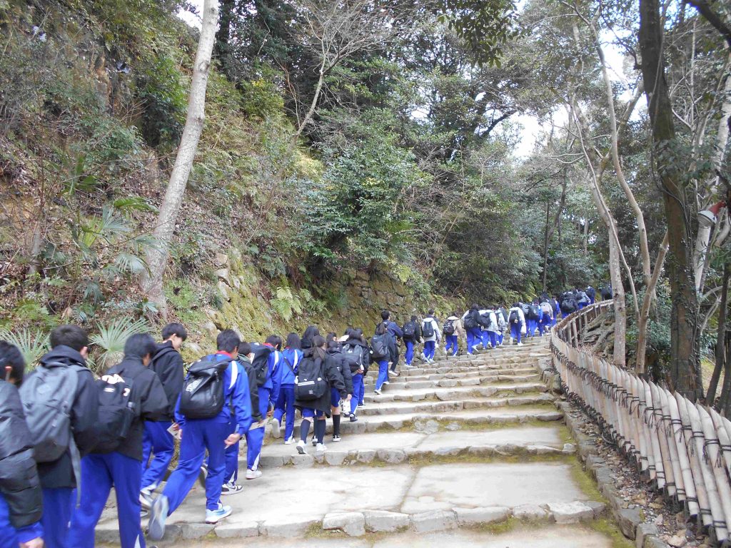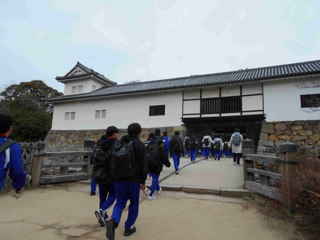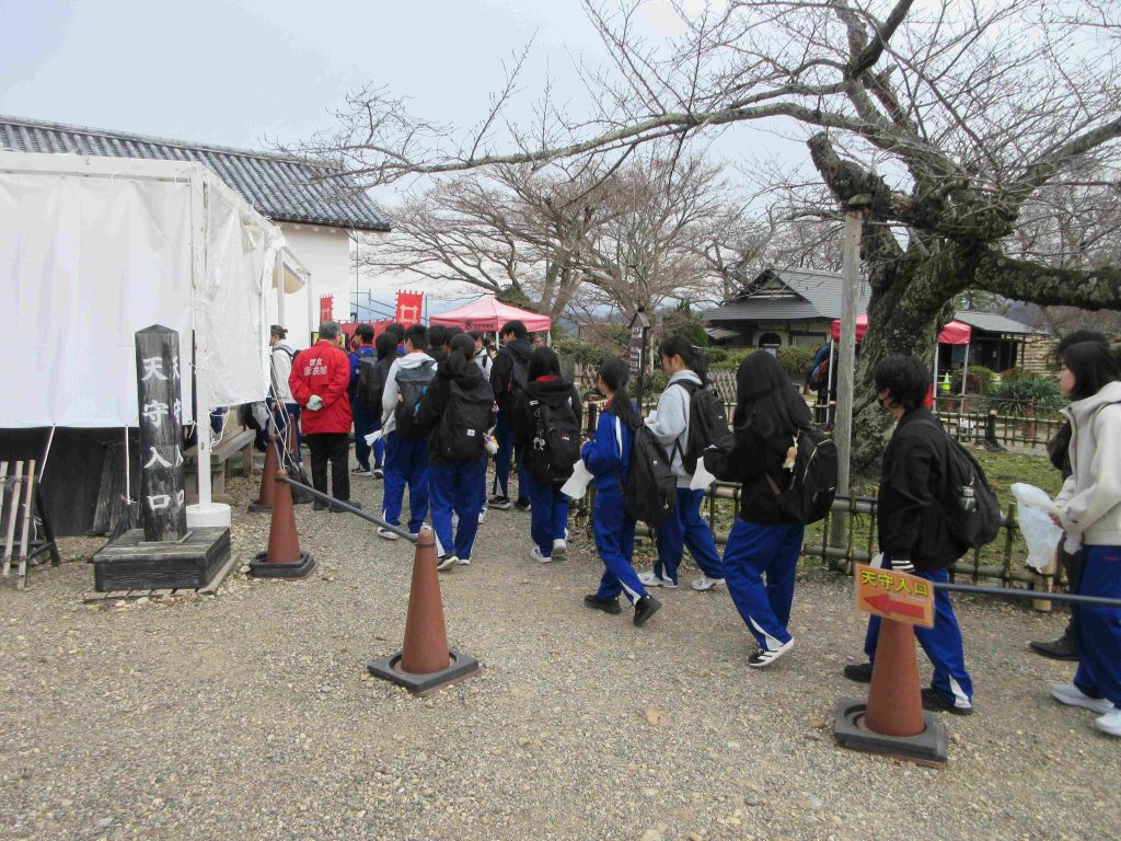 本日3/6(金)、2年生が彦根市内での校外学習を実施しました。バスと電車を乗り継いで彦根駅まで行き、そこから徒歩で彦根城へ向かいました。写真撮影後、天守や西の丸などを見学しました。昼食後は班別自主研修を行い、彦根城博物館や玄宮園、宗安寺などを見学しました。最後は護国神社に集合し、全員無事に帰路につきました。 生徒の皆さんもとても充実して楽しかったようです。天気もよくいい校外学習となりました。